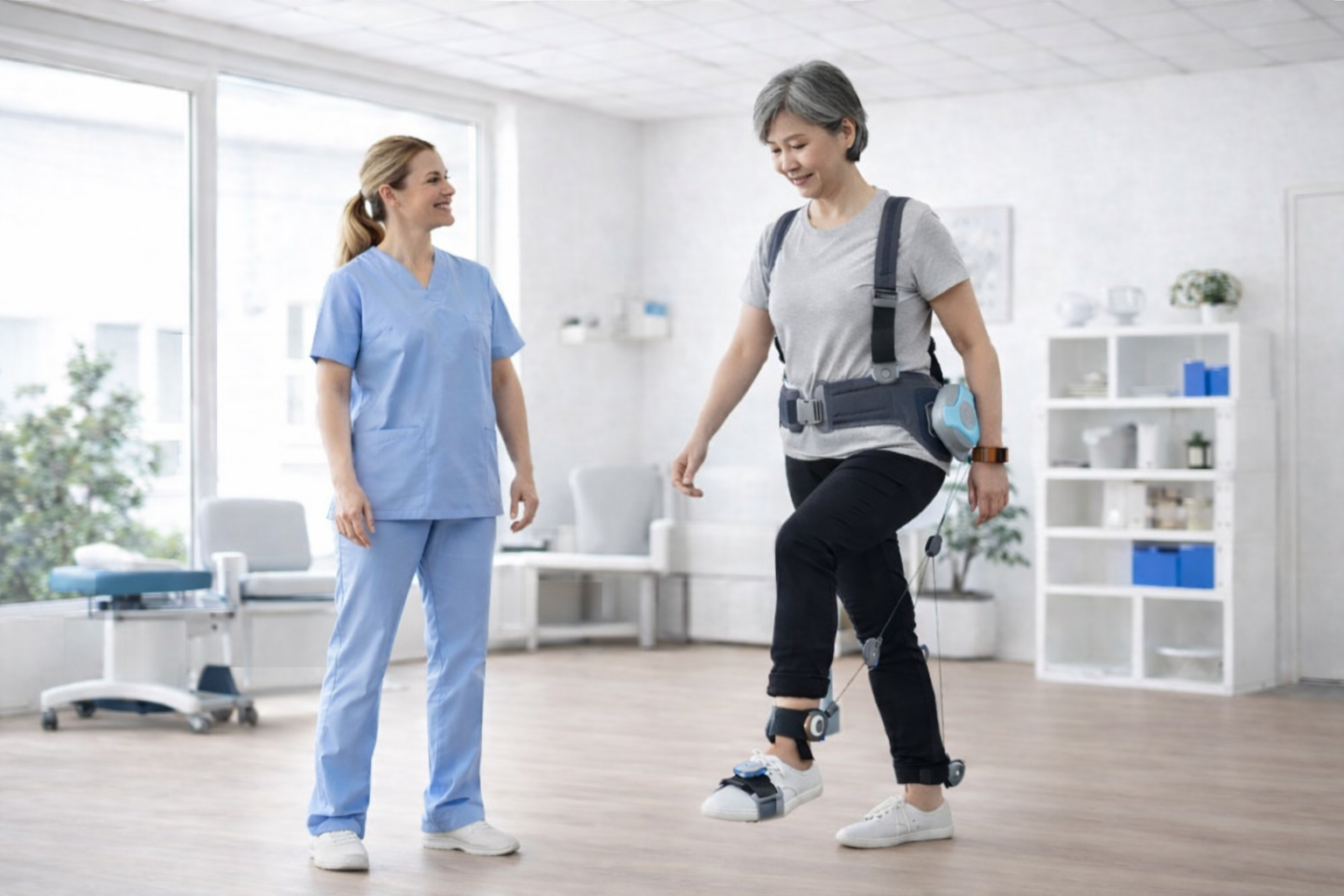 - Focus on neuromotor re-education: Unlike conventional exercise machines that simply improve strength or range of motion, Just Walk helps the nervous system regain the control needed to walk properly.